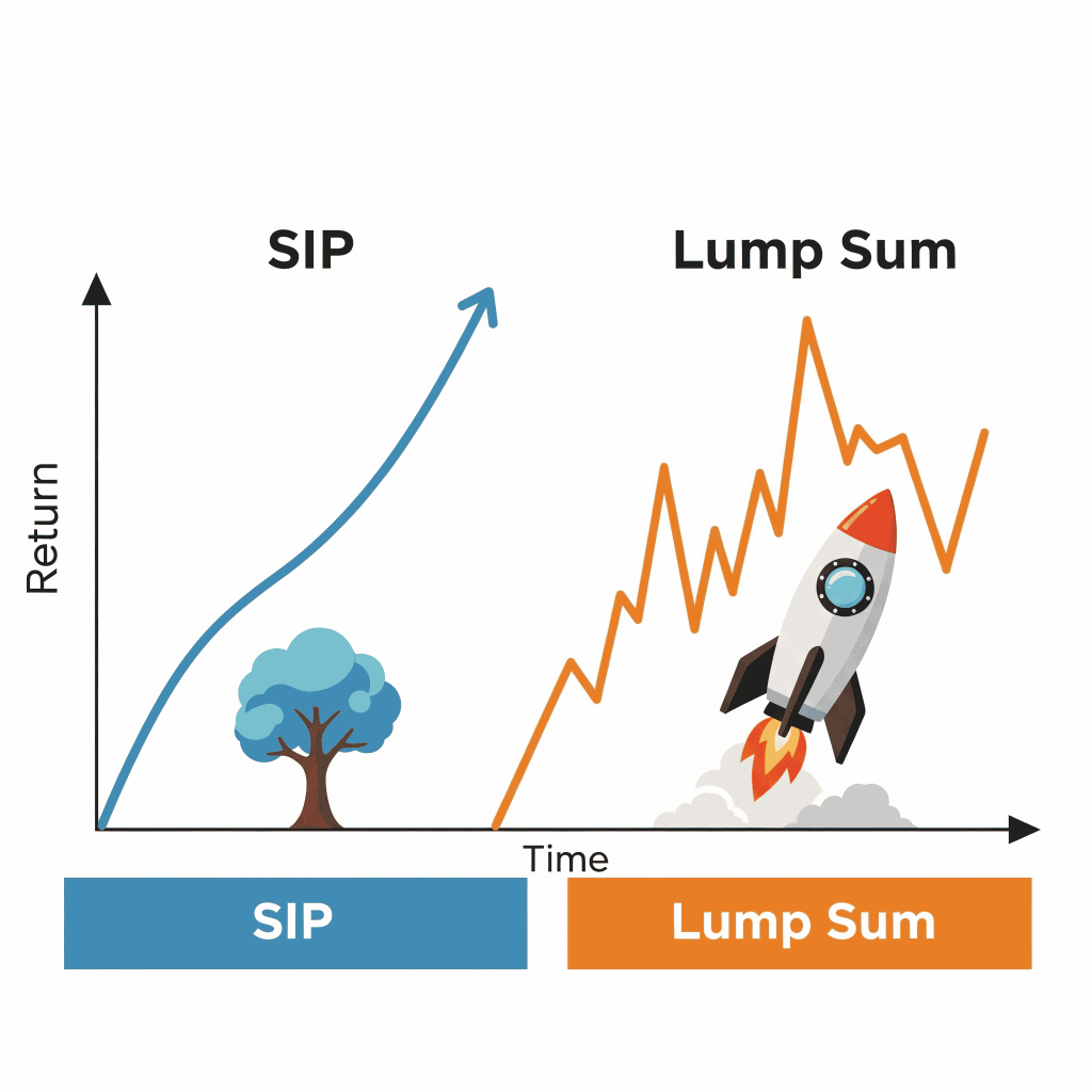 Most financial advisors recommend starting with SIPs, especially for beginners. It removes the stress of “when to invest,” and helps you stay invested for the long term.